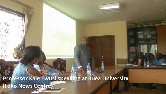 A cross-section of PhD students in the University of Buea, Cameroon, have benefited from a public lecture to enable them complete their studies on record time. The guest speaker during the occasion, Prof. Samuel Kale Ewusi of the United Nations University for Peace in Addis Ababa, Ethiopia, stated a number of guidelines the students should respect if they have to complete their studies within the stated time.