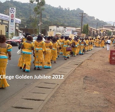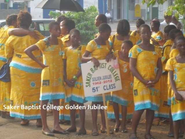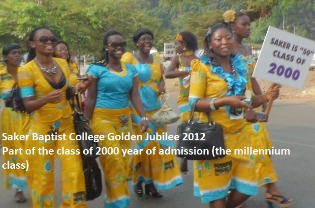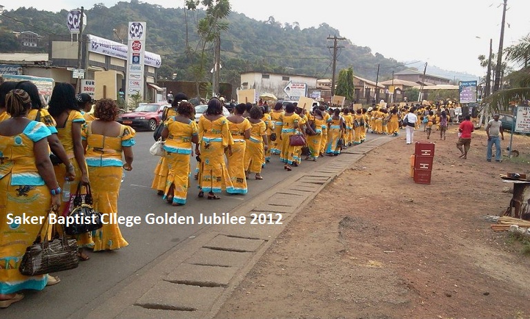 Ex-students of Saker Baptist College, Limbe, popularly known as Sakerettes, came in their colours and numbers from all the corners of the world and joined their alma mater to celebrate the school’s Golden Jubilee. Events marking celebrations of the school's 50 years of existence included traditional dances, a fashion show and singing. The events started from the 26th of January and ended on Sunday January 29th 2012 at the campus of the school. In the process, they transformed the streets of Limbe into gold.